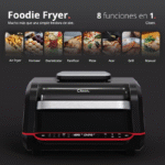 La freidora de aire Cloen Foodie Fryer es un equipo de cocción eléctrica que emplea circulación de aire caliente. Cuenta con una capacidad de 7 litros y una potencia nominal de 1700 W. El panel integra 18 programas y una configuración 8 en 1, con ocho funciones o modos de uso señalados en la referencia del producto. La visualización de los ajustes y del programa seleccionado se realiza mediante pantalla LED. La identificación comercial del modelo corresponde a Cloen Foodie Fryer, con especificaciones principales de 7 L, 1700 W, 18 programas y formato 8 en 1.