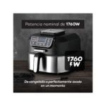 Freidora sin aceite Masterpro con capacidad declarada de 5,6 litros y potencia nominal de 1760 W. Este aparato eléctrico está destinado a la cocción de alimentos mediante circulación de aire caliente, sin sistema de inmersión en aceite. El conjunto incluye pulverizador, accesorio utilizado para aplicar líquido en pequeñas cantidades sobre los alimentos o sobre el recipiente de cocción, según el uso previsto. La capacidad de 5,6 L corresponde al volumen indicado para el compartimento de cocción y la potencia de 1760 W identifica el consumo nominal del equipo durante el funcionamiento. Producto comercializado bajo la marca Masterpro dentro de la categoría de freidoras sin aceite.