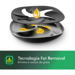 La Philips Airfryer HD9650/90 es una freidora de aire con capacidad de 7,3 L, capacidad para alimentos de hasta 1,4 kg y potencia de 2225 W. Incorpora tecnología Rapid Air y sistema Fat Removal. El panel de control digital incluye pantalla, selector de temperatura y 5 programas preestablecidos. El rango de temperatura es de 40 a 200 °C y el temporizador alcanza hasta 60 minutos. Cuenta con función de mantenimiento de temperatura y apagado automático al finalizar el ciclo. La cesta y el recipiente son extraíbles, con superficie antiadherente; las piezas desmontables son aptas para lavavajillas. El equipo se utiliza para freír, hornear, asar y recalentar. Funciona con alimentación de 220-240 V y frecuencia de 50/60 Hz. El cable de alimentación tiene una longitud aproximada de 0,8 m. Referencia del fabricante: HD9650/90.